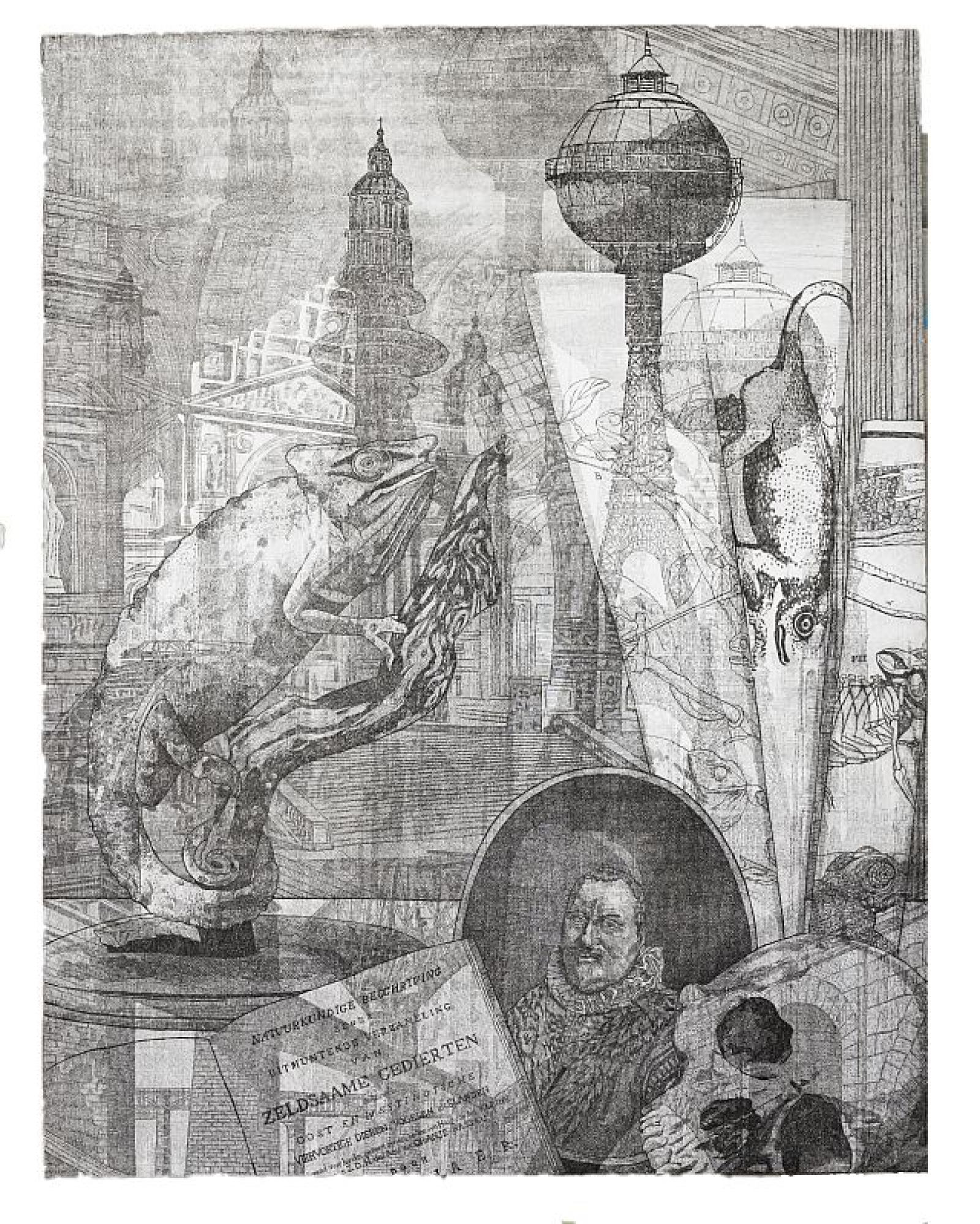 Ik combineer etsen uit verschillende oudere series. Deze druk ik over elkaar heen, wat fascinerende afdrukken oplevert. Door verschillende afbeeldingen over elkaar te leggen, probeer ik de veelheid aan levensvormen op onze planeet en de complexiteit van onze wereld weer te geven.